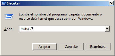 Entonces usando esta línea de comandos siempre nos aparecerá el escritorio remoto en pantalla completa.