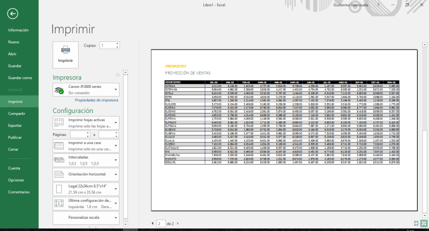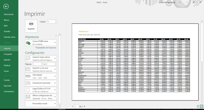 Entonces le damos imprimir y vemos que el encabezado no se copia en cada hoja.