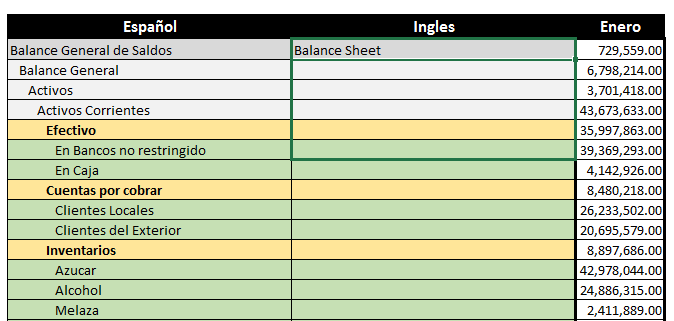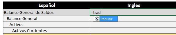 Ya traducida la primera línea podemos copiar la formula a las demás celdas, como cualquier fórmula de Excel.