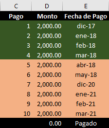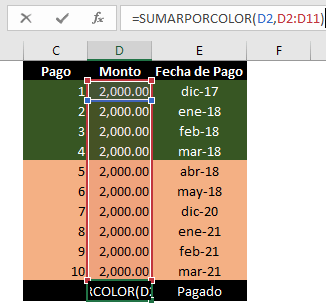 Queremos sumar solo el monto pagado, que este caso es todo lo que está en color verde y lo que está pendiente en color rojo. Trate de usar el SUMAR.SI pero por más que trate no encontré como hacerlo, por lo cual vamos a crear una formula usando VBA.