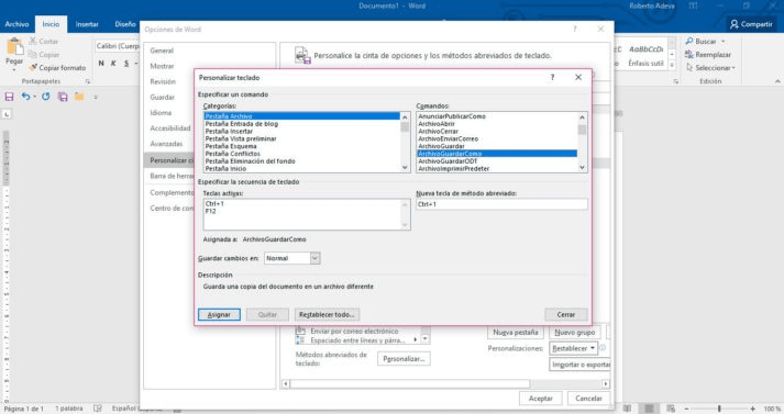 7. Personalizar atajos de teclado propios para las distintas opciones de Word