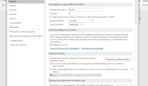 Cada vez que abrimos Microsoft Word tenemos que pasar por la pantalla de inicio, desde la cual podemos acceder a los documentos recientes o elegir entre diferentes plantillas para nuestros documentos. Pero si preferimos saltarnos esta pantalla, hay una opción en Word que nos permite hacerlo. Para ello, vamos al menú Archivo > opciones > General y en opciones de inicio desmarcamos la opción Mostrar la pantalla de inicio cuando se inicie esta aplicación.