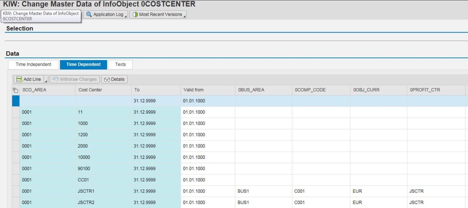 Incluyendo la consulta como fuente de datos en AO ahora se pueden cambiar los datos maestros. Además, la dependencia de tiempo de los atributos y el texto están funcionando y se pueden cambiar. Para los atributos dependientes del tiempo, las nuevas características 1DATEFROM, 1DATETO se agregan al nivel de agregación. Para textos dependientes del tiempo se agregan las características meta 1TXTDATEFROM, 1TXTDATETO.