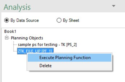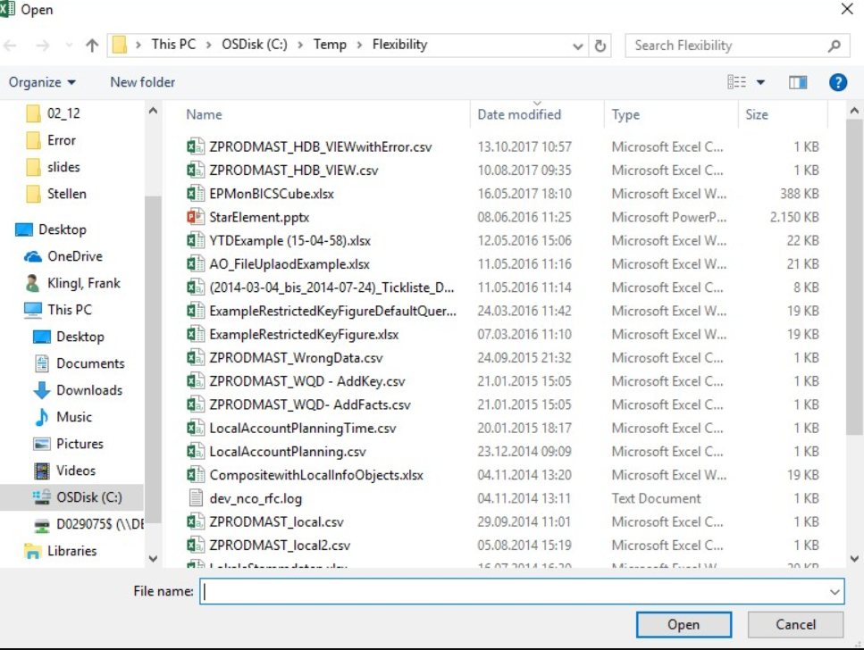 La adopción de AO en este momento se realizó solo en un PoC y se envió en una versión del producto. Ahora, con AO 2.7, la carga del archivo estará presente en la interfaz de usuario de Excel. Cuando ejecute una función de planificación de tipo «0RSPL_FILE_UPLOAD_AO» aparecerá una ventana emergente para cargar el archivo de datos.