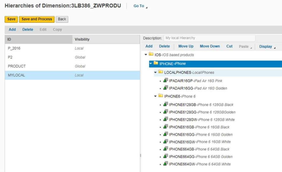 El mismo enfoque también fue adoptado por BPC NW y BPC11 en el cliente de administración web. Esto incluye también los atributos y jerarquías locales, y últimamente los permitimos en modo de visualización para vistas HANA en BPC 10.1 en NW 7.50 SP11 o BPC 11 con SP4 (consulte, por ejemplo, la nota 2514651).