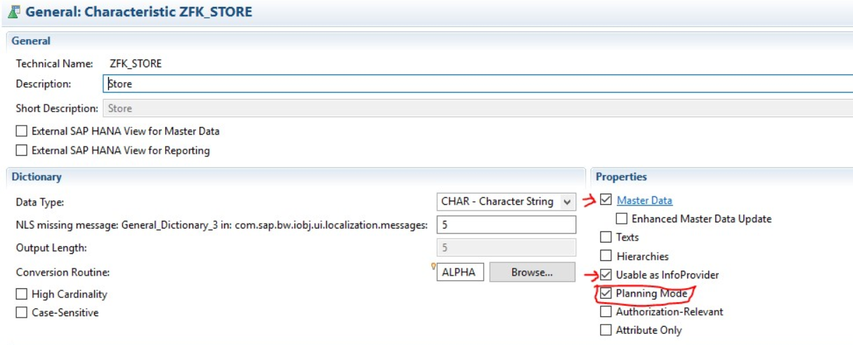 Para habilitar la planificación de datos maestros en BW / 4HANA, InfoObject debe estar marcado como Proveedor de información en las herramientas de modelado de BW en el editor de InfoObject.