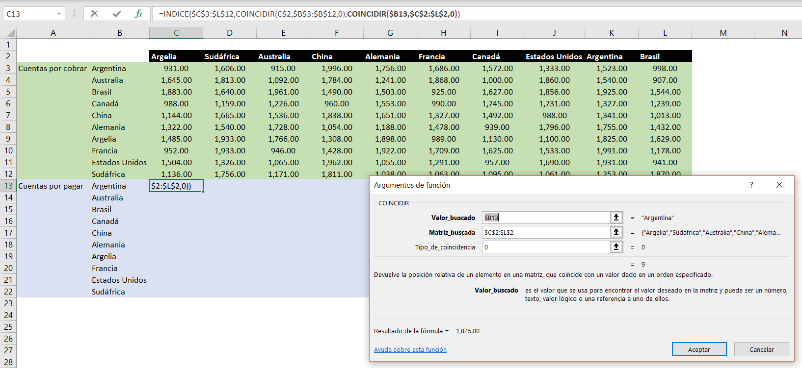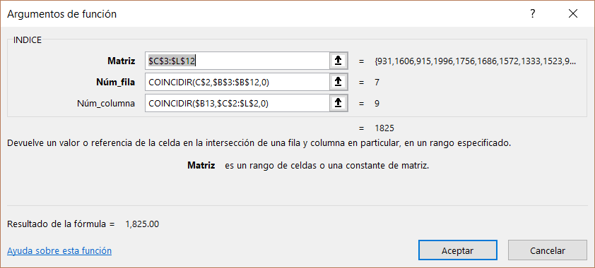 Con esta combinación de fórmulas, pudimos buscar y encontrar un valor que estaba en tanto en filas como en columnas.