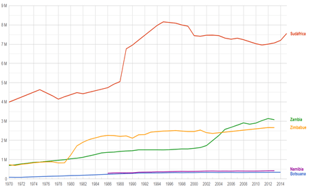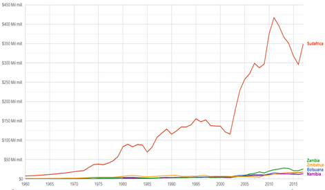 Google Public Data. (2019). Producto Interno Bruto. Obtenido de https://www.google.com/publicdata/explore?ds=d5bncppjof8f9_&met_y=ny_gdp_mktp_cd&hl=es&dl=es#!ctype=l&strail=false&bcs=d&nselm=h&met_y=ny_gdp_mktp_cd&scale_y=lin&ind_y=false&rdim=region&idim=country:ZAF:BWA:ZWE:ZMB:NAM&ifdim=region&hl=es&dl=es&ind=false