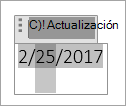 - Para editar la fecha, haga clic en el cuadro gris, escriba una nueva fecha y, a continuación, haga clic fuera del cuadro. Para cambiar la fecha a la fecha actual, haga clic en el campo de fecha y haga clic en Actualizar.