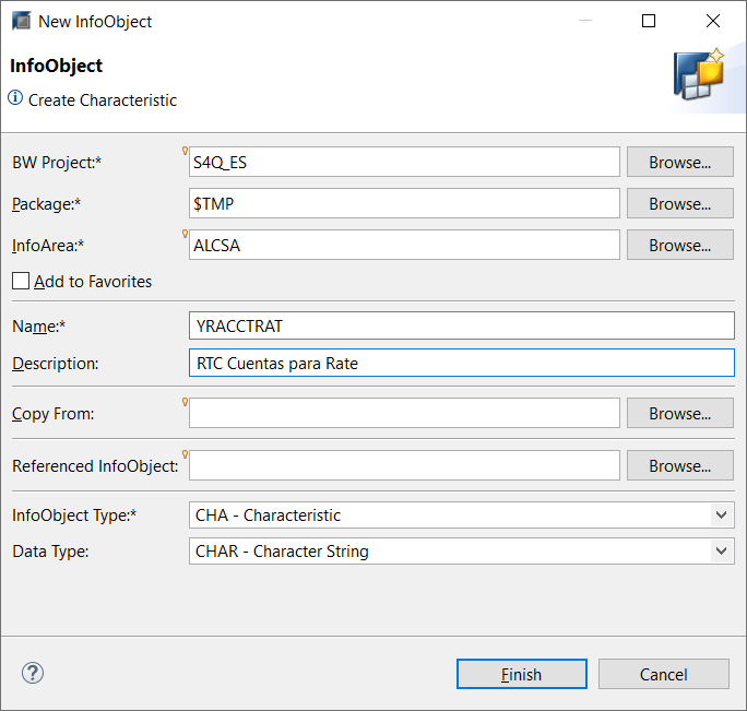 Nos va a pedir nombre y Descripción, luego damos clic en el botón Finish
