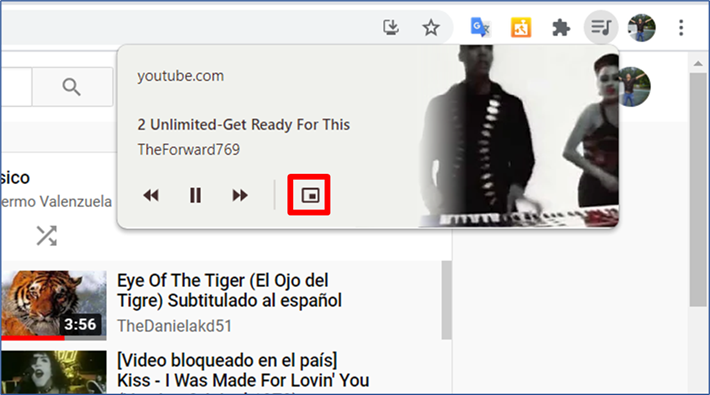 - Cuando el video comienza a visualizarse en el navegador, se activa la extensión Control de medios