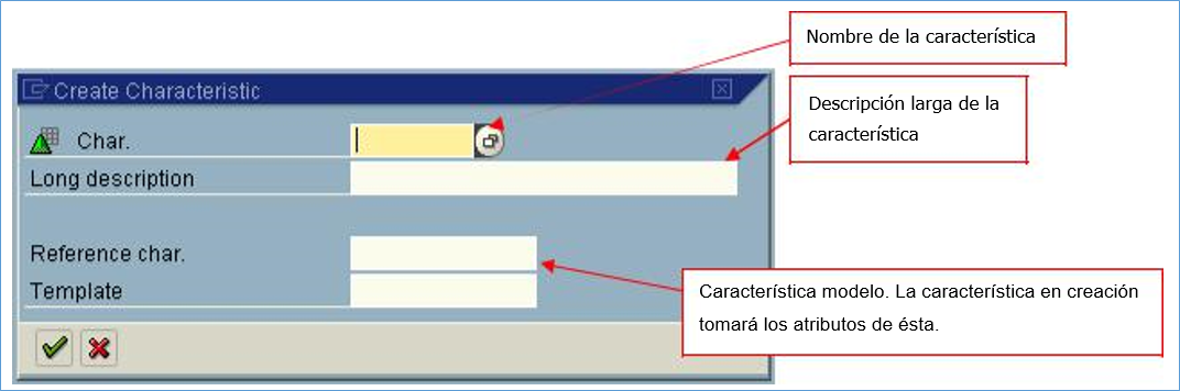 Al crear un objeto a partir de un InfoCatalogo de características, habrán de completarse los siguientes campos.