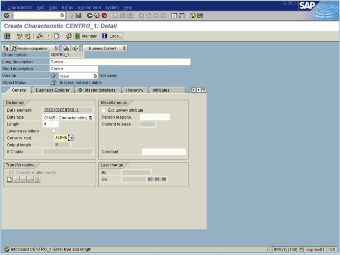 - Atributo: la característica creada sólo puede ser utilizada como un atributo visualizado para otra característica, y no como una característica aislada de navegación en el InfoCubo, salvo que se haya especificado lo contrario en el diseño.