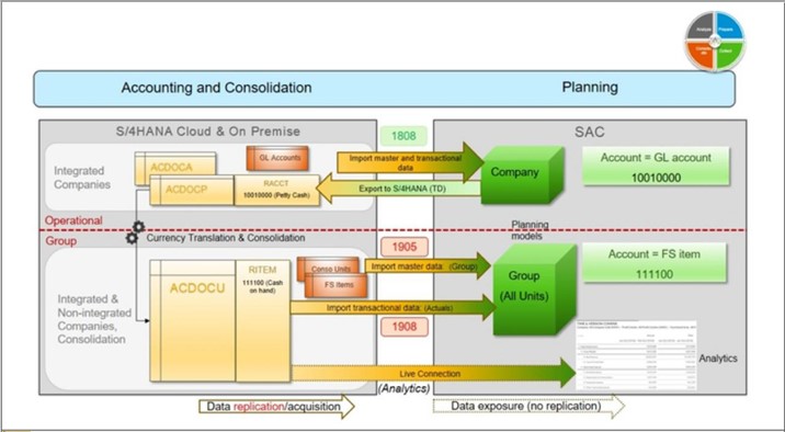 - Planificación: Versiones flexibles, ejecute la consolidación en datos ACDOCP/SAP Analytics Cloud.