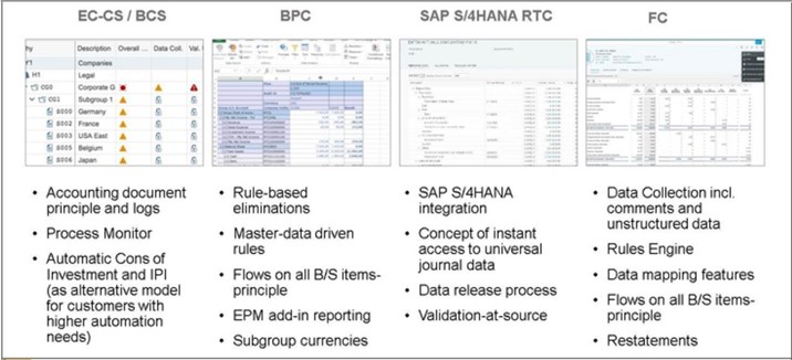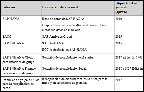 La suite Group Reporting incluye más que un motor de consolidación. Todos los productos anteriores son soluciones nuevas y no son sucesores legales de ninguna aplicación de consolidación de SAP existente.