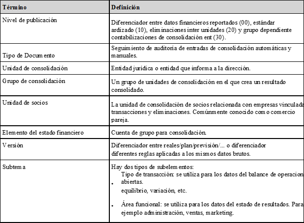 - Modelo de datos y datos maestros: amplio modelo de datos que cubre los campos comerciales del diario universal, datos maestros específicos de consolidación para empresas que no son de SAP S/4HANA y simulación.