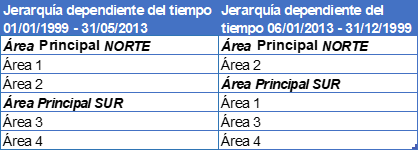 Dentro de las áreas de una empresa de reestructuración, puede crear versiones dependientes del tiempo de una jerarquía para el InfoObjeto del área principal. Esto le permite comparar la reestructuración en diferentes períodos de tiempo en una consulta.