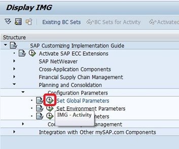 Para establecer el parámetro IMG Global, siga los pasos a continuación, Expanda Planificación y consolidación -> Parámetros de configuración -> Haga clic en Actividad IMG de Establecer parámetros globales.