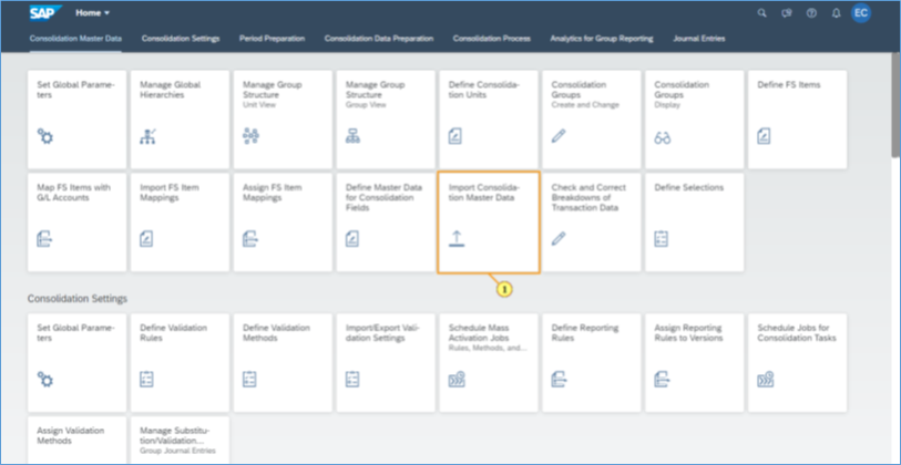 1. Para abrir la aplicación, seleccione el cuadro Importar datos maestros de consolidación.