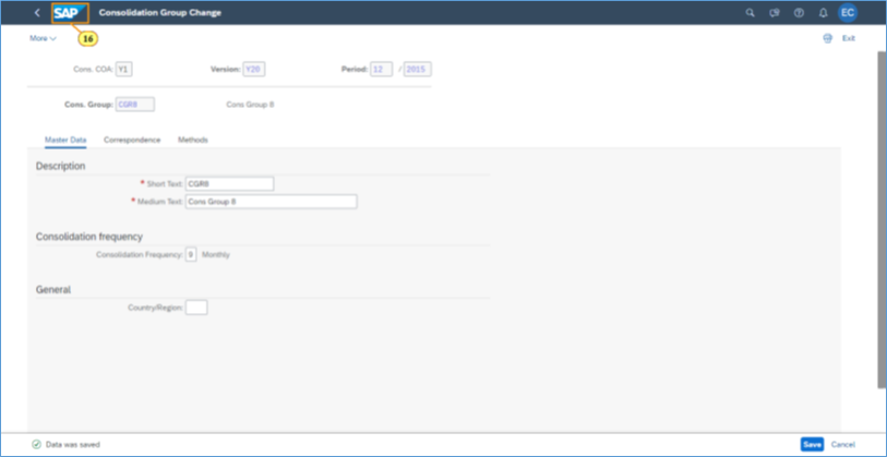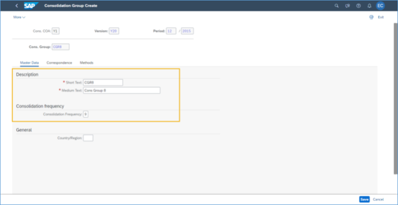 En datos maestros, ingrese los detalles de descripción requeridos y la frecuencia de consolidación adecuada. Para este tutorial, esto se ha hecho por usted.