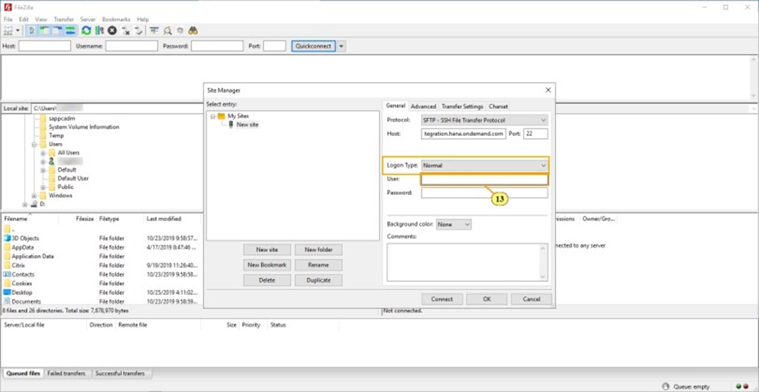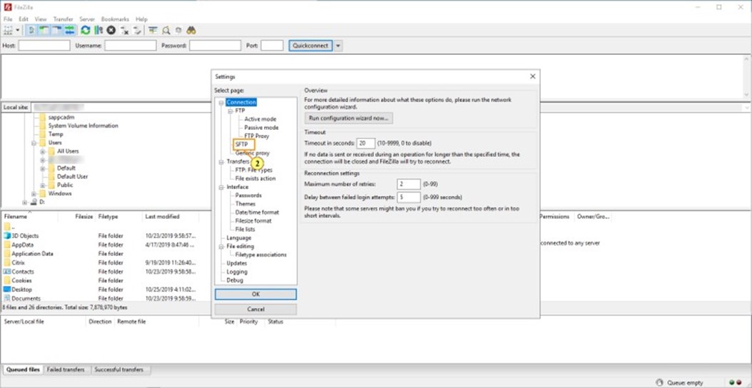 12. Seleccione SFTP – Protocolo de transferencia de archivos SSH.