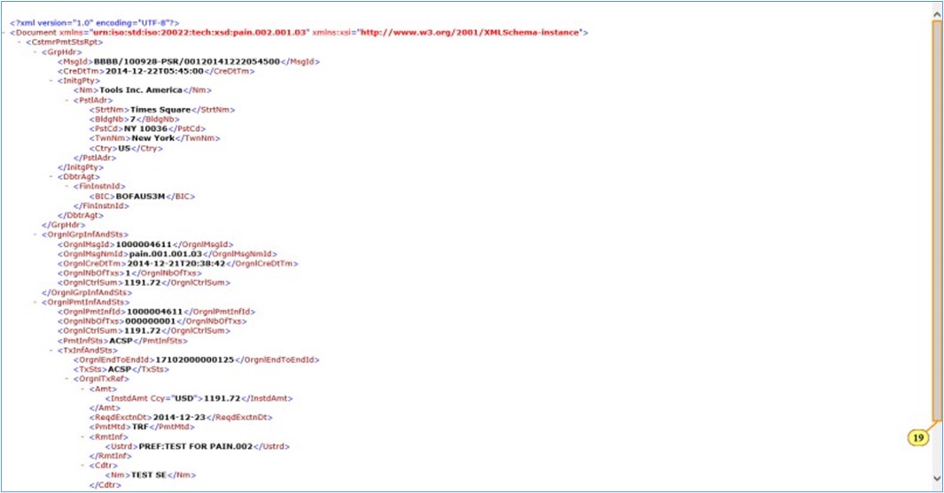 - <InstdAmt Ccy=»USD»>Amount</I nstdAmt>, por ejemplo, 1191.72