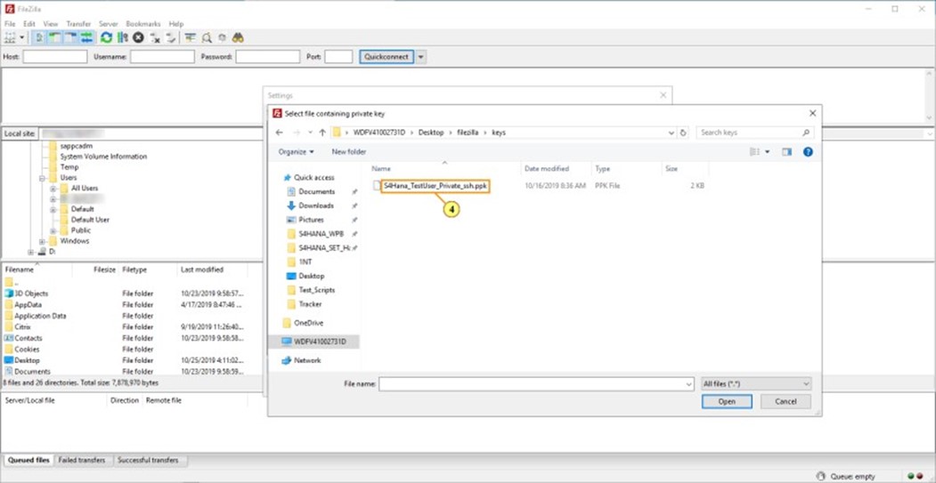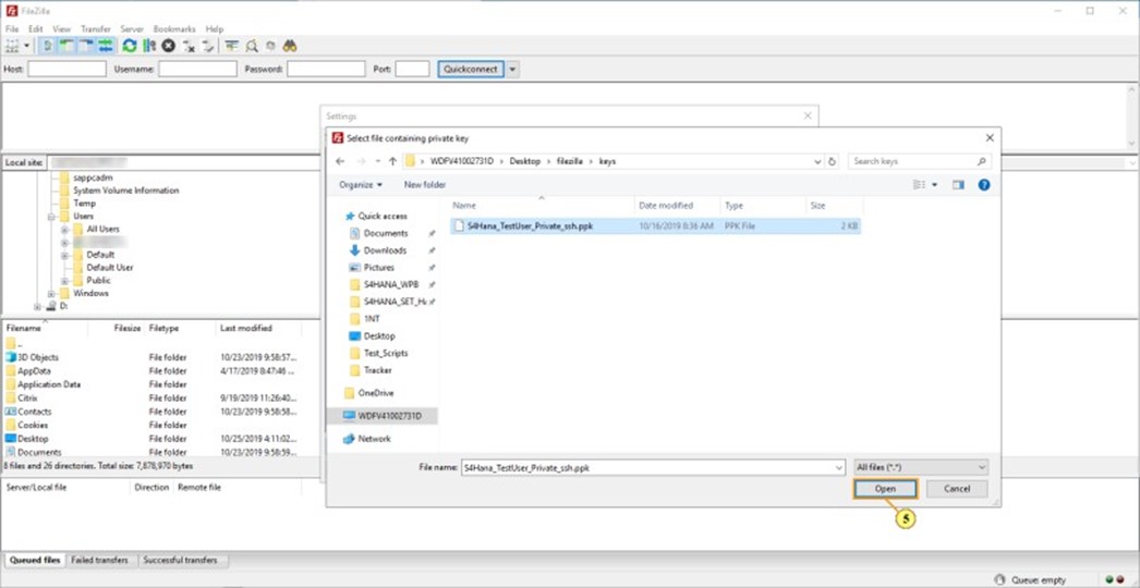 4. Seleccione el archivo de clave de su PC local.