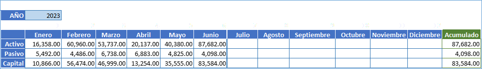Con esta formula lo que estamos logrando es traer siempre el ultimo valor de una tabla, quedando de la siguiente forma, donde la columna Acumulado traerá en este caso los valores de junio, ya que tenemos seleccionado el año 2023.