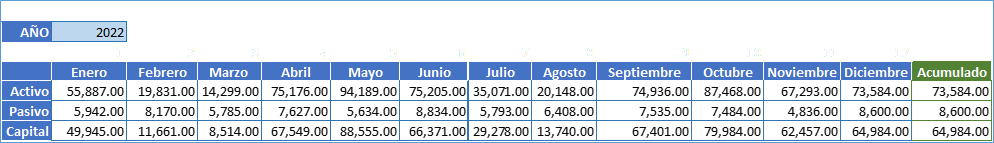 Tenemos una tabla que muestra los valores acumulados, como se muestra en la siguiente imagen. Cuando seleccionamos un año anterior muestra el acumulado hasta el mes de diciembre como se muestra en la imagen siguiente.